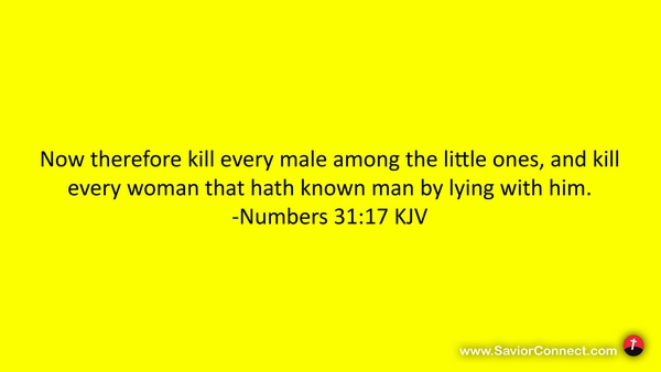 Now therefore kill every male among the little ones, and kill every woman that hath known man by lying with him. -Numbers 31:17 KJV