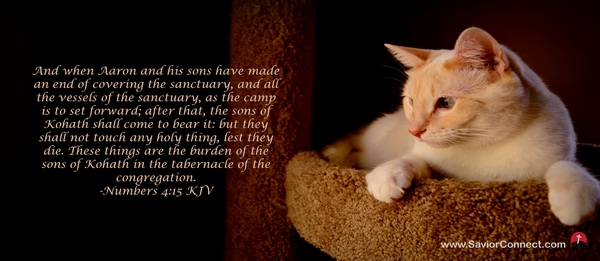 And when Aaron and his sons have made an end of covering the sanctuary, and all the vessels of the sanctuary, as the camp is to set forward; after that, the sons of Kohath shall come to bear it: but they shall not touch any holy thing, lest they die. These things are the burden of the sons of Kohath in the tabernacle of the congregation. -Numbers 4:15 KJV