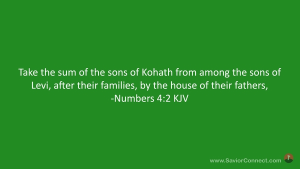 Take the sum of the sons of Kohath from among the sons of Levi, after their families, by the house of their fathers, -Numbers 4:2 KJV