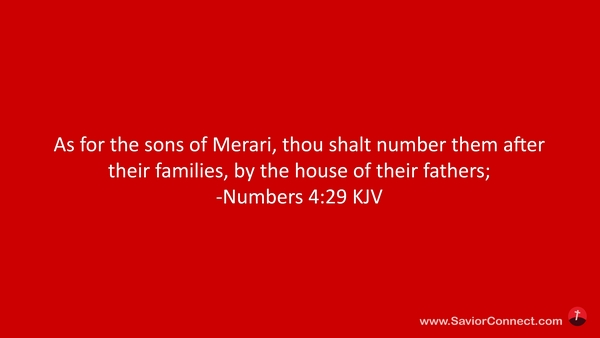 As for the sons of Merari, thou shalt number them after their families, by the house of their fathers; -Numbers 4:29 KJV