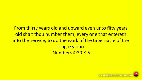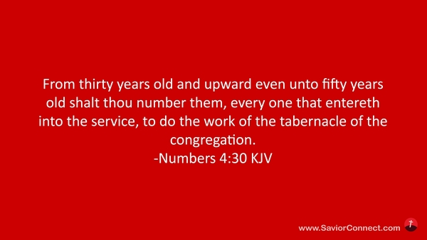 From thirty years old and upward even unto fifty years old shalt thou number them, every one that entereth into the service, to do the work of the tabernacle of the congregation. -Numbers 4:30 KJV