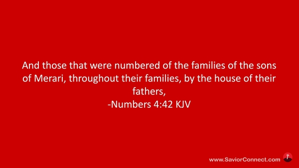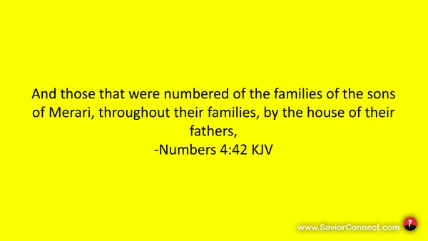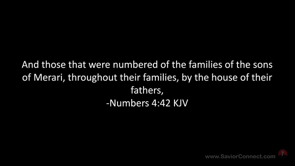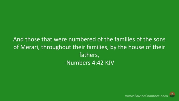 And those that were numbered of the families of the sons of Merari, throughout their families, by the house of their fathers, -Numbers 4:42 KJV