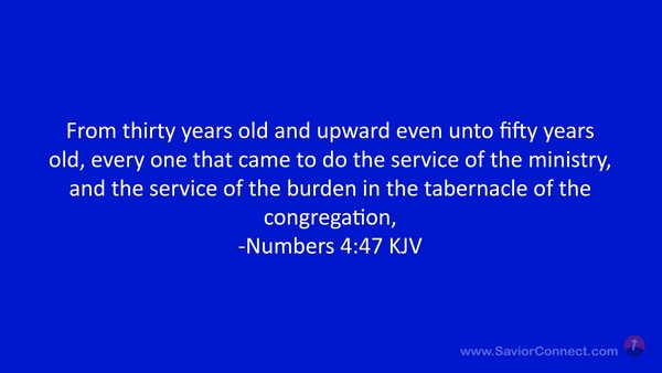 From thirty years old and upward even unto fifty years old, every one that came to do the service of the ministry, and the service of the burden in the tabernacle of the congregation, -Numbers 4:47 KJV