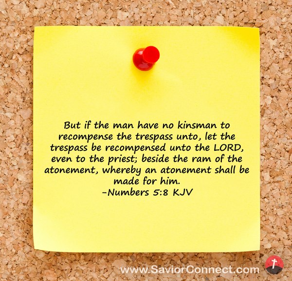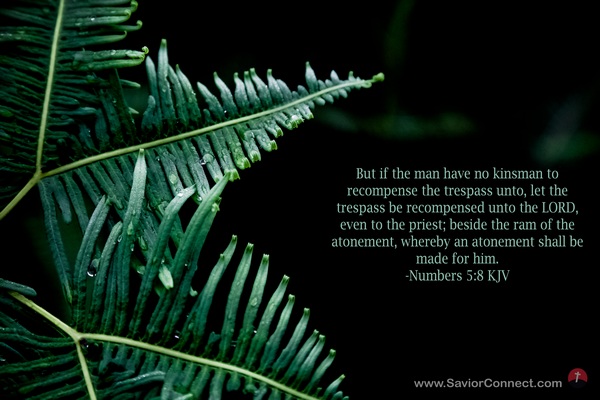 But if the man have no kinsman to recompense the trespass unto, let the trespass be recompensed unto the LORD, even to the priest; beside the ram of the atonement, whereby an atonement shall be made for him. -Numbers 5:8 KJV