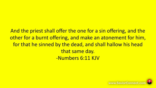 And the priest shall offer the one for a sin offering, and the other for a burnt offering, and make an atonement for him, for that he sinned by the dead, and shall hallow his head that same day. -Numbers 6:11 KJV
