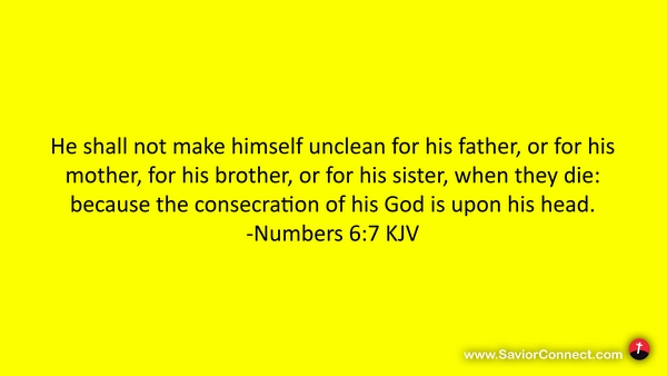 He shall not make himself unclean for his father, or for his mother, for his brother, or for his sister, when they die: because the consecration of his God is upon his head. -Numbers 6:7 KJV