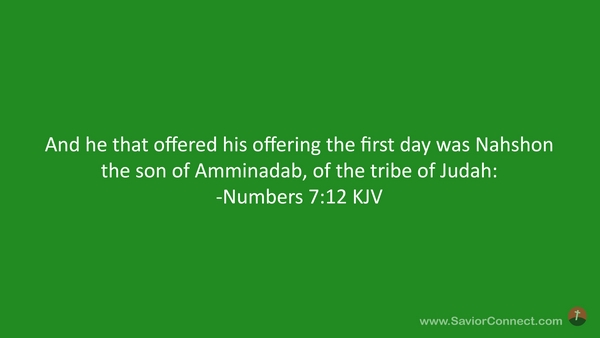 And he that offered his offering the first day was Nahshon the son of Amminadab, of the tribe of Judah: -Numbers 7:12 KJV