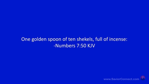 One golden spoon of ten shekels, full of incense: -Numbers 7:50 KJV