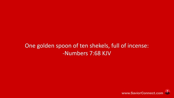 One golden spoon of ten shekels, full of incense: -Numbers 7:68 KJV