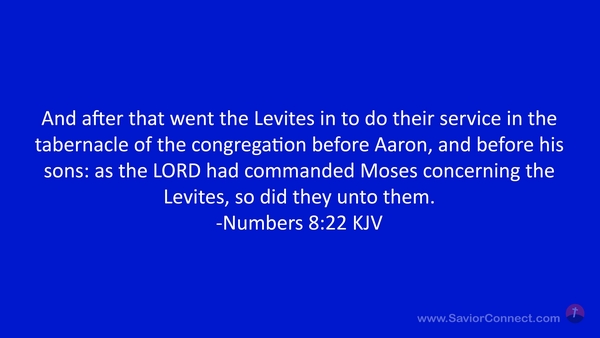 And after that went the Levites in to do their service in the tabernacle of the congregation before Aaron, and before his sons: as the LORD had commanded Moses concerning the Levites, so did they unto them. -Numbers 8:22 KJV