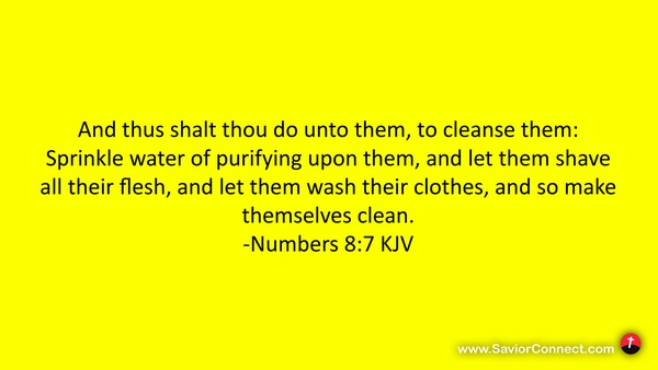 And thus shalt thou do unto them, to cleanse them: Sprinkle water of purifying upon them, and let them shave all their flesh, and let them wash their clothes, and so make themselves clean. -Numbers 8:7 KJV