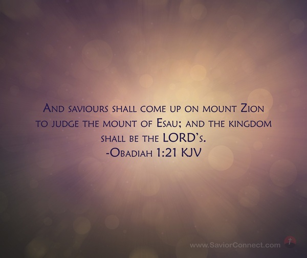 And saviours shall come up on mount Zion to judge the mount of Esau; and the kingdom shall be the LORD's. -Obadiah 1:21 KJV