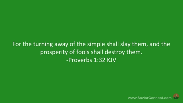 For the turning away of the simple shall slay them, and the prosperity of fools shall destroy them. -Proverbs 1:32 KJV