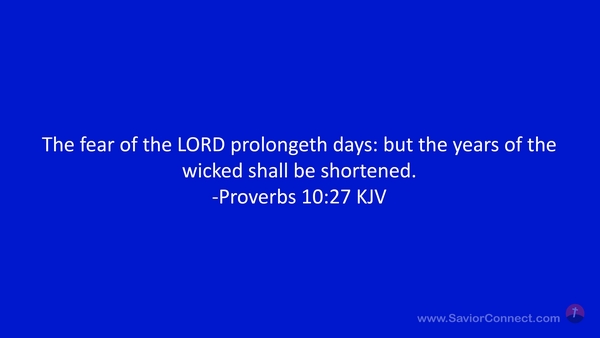 The fear of the LORD prolongeth days: but the years of the wicked shall be shortened. -Proverbs 10:27 KJV
