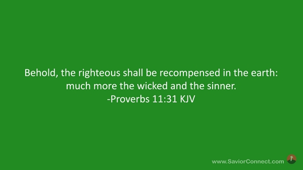 Behold, the righteous shall be recompensed in the earth: much more the wicked and the sinner. -Proverbs 11:31 KJV