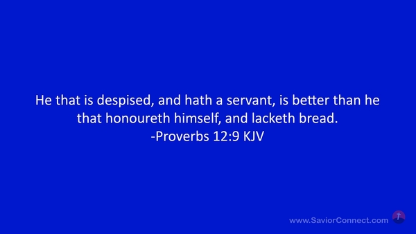 He that is despised, and hath a servant, is better than he that honoureth himself, and lacketh bread. -Proverbs 12:9 KJV