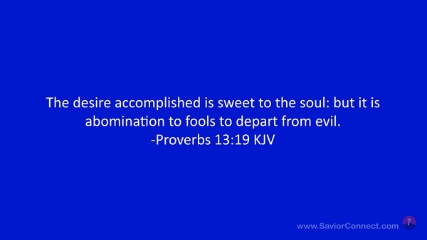 The desire accomplished is sweet to the soul: but it is abomination to fools to depart from evil. -Proverbs 13:19 KJV