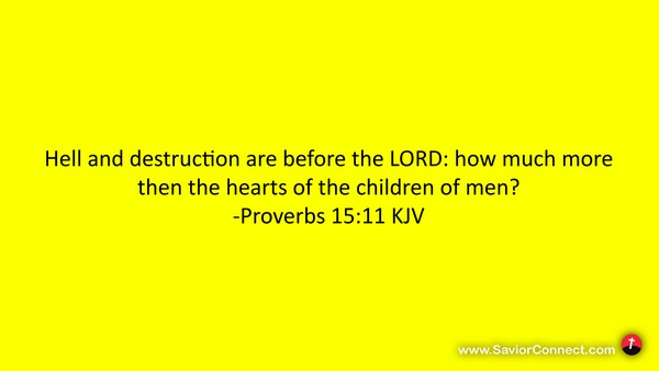 Hell and destruction are before the LORD: how much more then the hearts of the children of men? -Proverbs 15:11 KJV