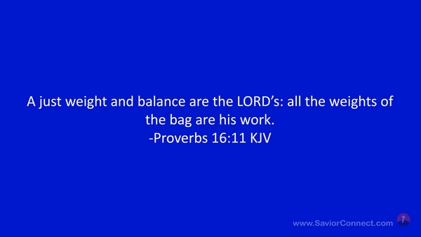 A just weight and balance are the LORD's: all the weights of the bag are his work. -Proverbs 16:11 KJV