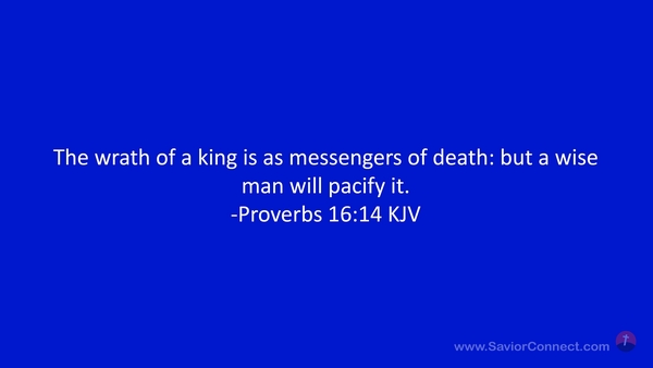 The wrath of a king is as messengers of death: but a wise man will pacify it. -Proverbs 16:14 KJV