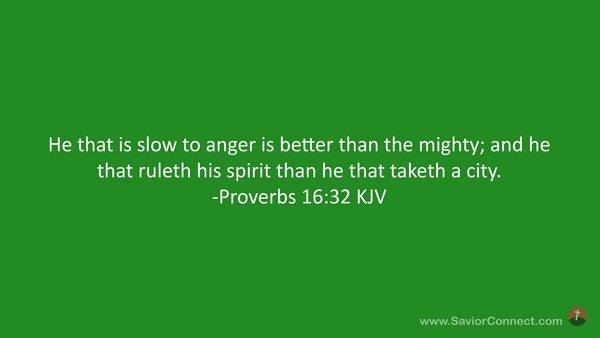 He that is slow to anger is better than the mighty; and he that ruleth his spirit than he that taketh a city. -Proverbs 16:32 KJV