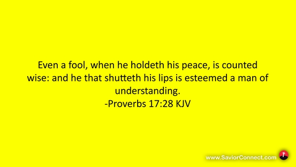 Even a fool, when he holdeth his peace, is counted wise: and he that shutteth his lips is esteemed a man of understanding. -Proverbs 17:28 KJV