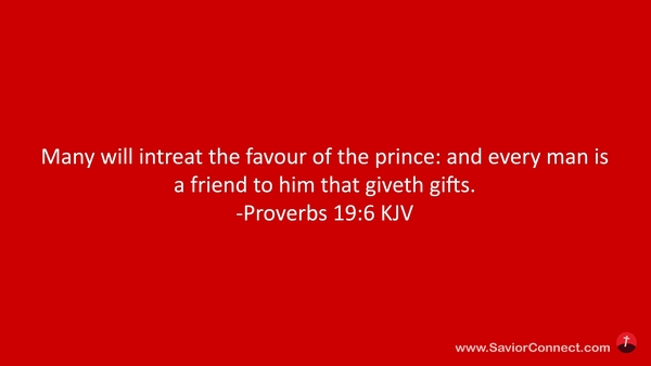 Many will intreat the favour of the prince: and every man is a friend to him that giveth gifts. -Proverbs 19:6 KJV
