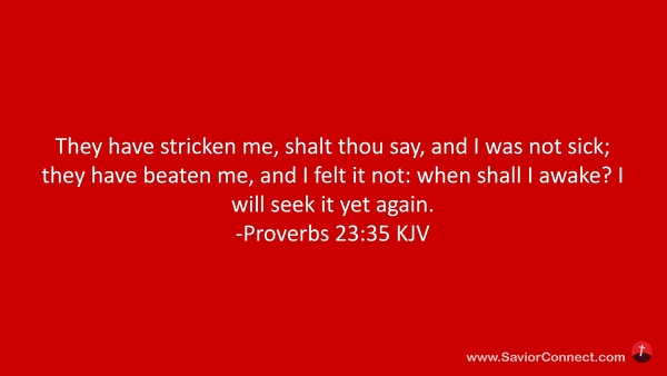 They have stricken me, shalt thou say, and I was not sick; they have beaten me, and I felt it not: when shall I awake? I will seek it yet again. -Proverbs 23:35 KJV