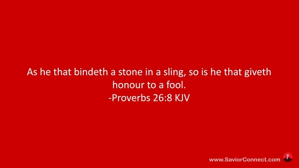 As he that bindeth a stone in a sling, so is he that giveth honour to a fool. -Proverbs 26:8 KJV