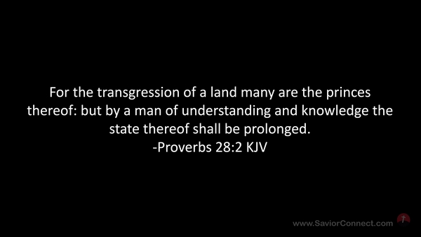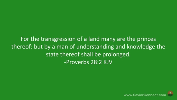 For the transgression of a land many are the princes thereof: but by a man of understanding and knowledge the state thereof shall be prolonged. -Proverbs 28:2 KJV