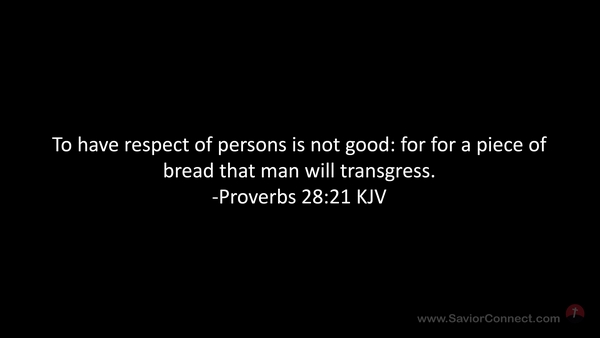 To have respect of persons is not good: for for a piece of bread that man will transgress. -Proverbs 28:21 KJV