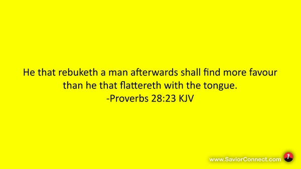 He that rebuketh a man afterwards shall find more favour than he that flattereth with the tongue. -Proverbs 28:23 KJV