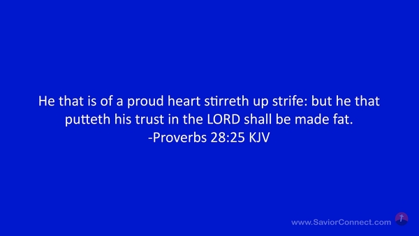 He that is of a proud heart stirreth up strife: but he that putteth his trust in the LORD shall be made fat. -Proverbs 28:25 KJV