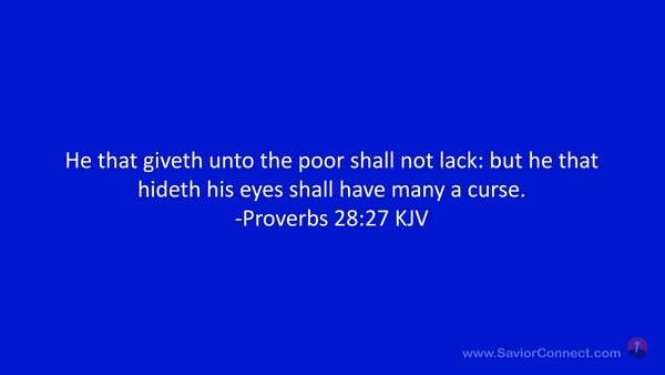 He that giveth unto the poor shall not lack: but he that hideth his eyes shall have many a curse. -Proverbs 28:27 KJV