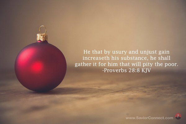 He that by usury and unjust gain increaseth his substance, he shall gather it for him that will pity the poor. -Proverbs 28:8 KJV