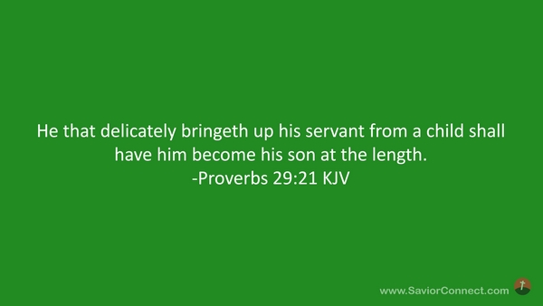 He that delicately bringeth up his servant from a child shall have him become his son at the length. -Proverbs 29:21 KJV