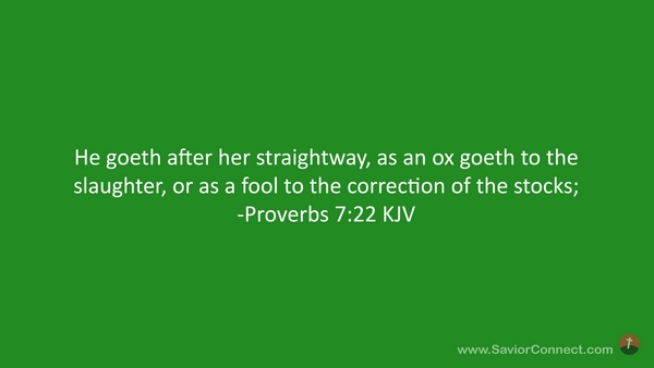 He goeth after her straightway, as an ox goeth to the slaughter, or as a fool to the correction of the stocks; -Proverbs 7:22 KJV