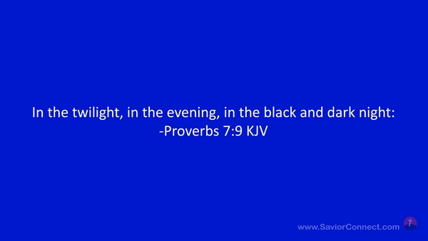 In the twilight, in the evening, in the black and dark night: -Proverbs 7:9 KJV