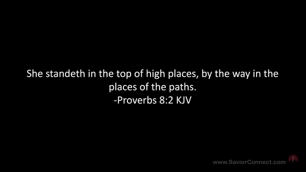 She standeth in the top of high places, by the way in the places of the paths. -Proverbs 8:2 KJV