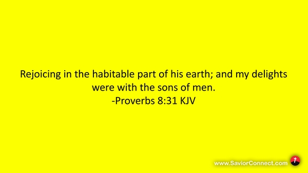 Rejoicing in the habitable part of his earth; and my delights were with the sons of men. -Proverbs 8:31 KJV