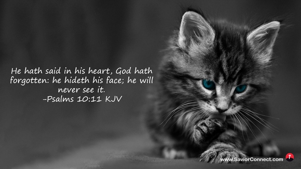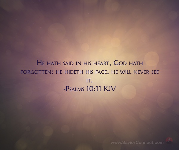He hath said in his heart, God hath forgotten: he hideth his face; he will never see it. -Psalms 10:11 KJV
