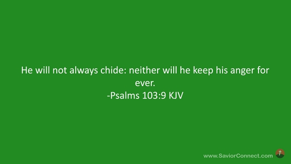 He will not always chide: neither will he keep his anger for ever. -Psalms 103:9 KJV