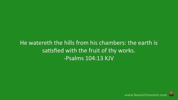 He watereth the hills from his chambers: the earth is satisfied with the fruit of thy works. -Psalms 104:13 KJV
