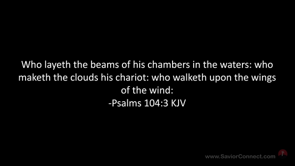 Who layeth the beams of his chambers in the waters: who maketh the clouds his chariot: who walketh upon the wings of the wind: -Psalms 104:3 KJV