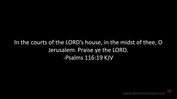 In the courts of the LORD's house, in the midst of thee, O Jerusalem. Praise ye the LORD. -Psalms 116:19 KJV
