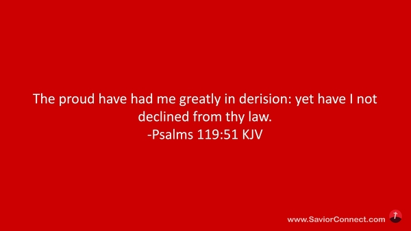 The proud have had me greatly in derision: yet have I not declined from thy law. -Psalms 119:51 KJV