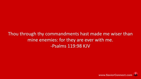 Thou through thy commandments hast made me wiser than mine enemies: for they are ever with me. -Psalms 119:98 KJV
