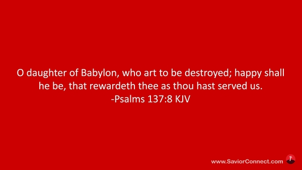 O daughter of Babylon, who art to be destroyed; happy shall he be, that rewardeth thee as thou hast served us. -Psalms 137:8 KJV