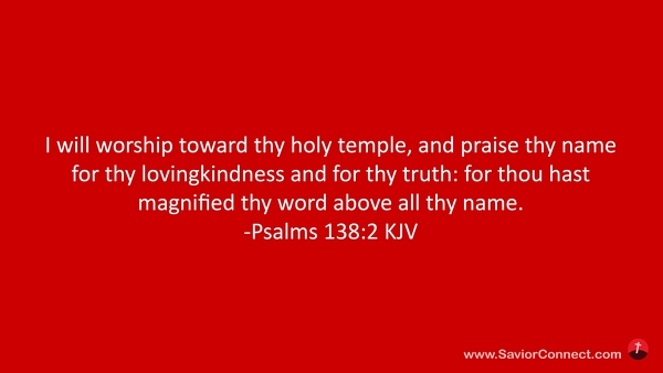 I will worship toward thy holy temple, and praise thy name for thy lovingkindness and for thy truth: for thou hast magnified thy word above all thy name. -Psalms 138:2 KJV