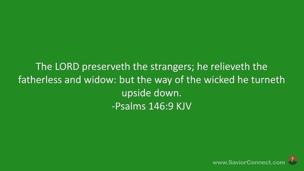 The LORD preserveth the strangers; he relieveth the fatherless and widow: but the way of the wicked he turneth upside down. -Psalms 146:9 KJV